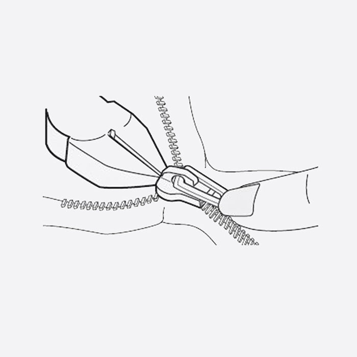 For non-separating (closed-end zippers), place slider over closed zipper teeth (A); press jaws of slider firmly together. If teeth are completely open (B), place slider over one side of teeth; insert other side of teeth into slider and firmly close