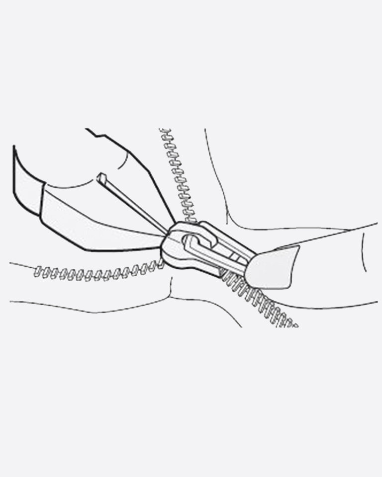 For non-separating (closed-end zippers), place slider over closed zipper teeth (A); press jaws of slider firmly together. If teeth are completely open (B), place slider over one side of teeth; insert other side of teeth into slider and firmly close