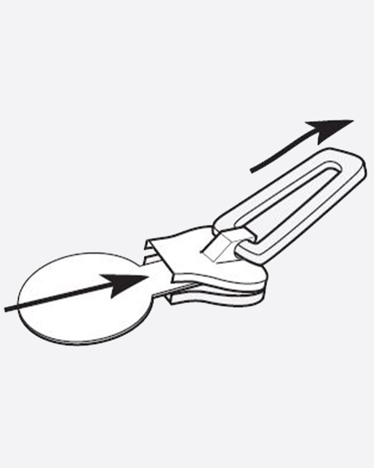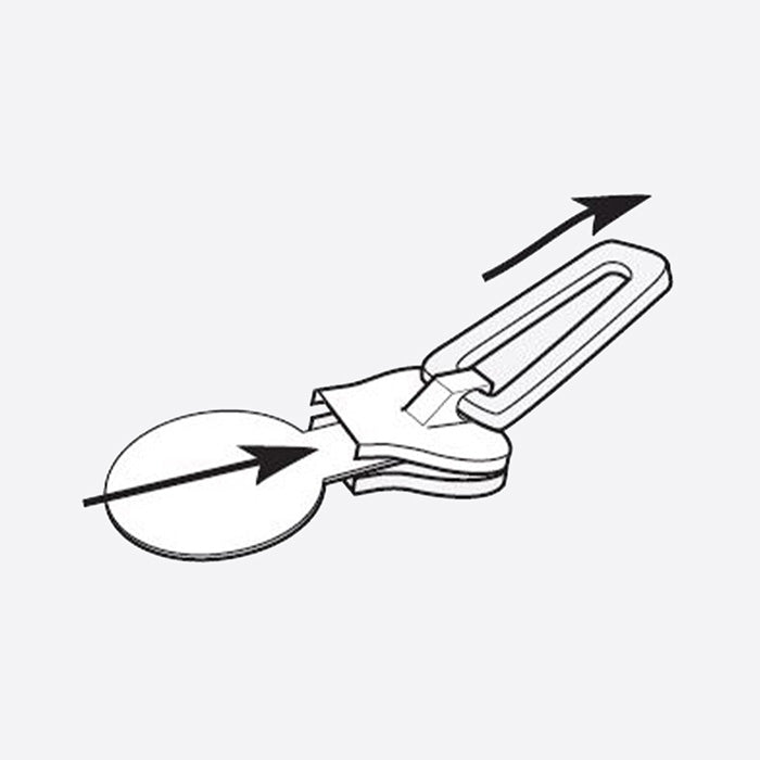 To open slider, push lower jaw of slider down with tool while holding pull tab firmly; slider will open
